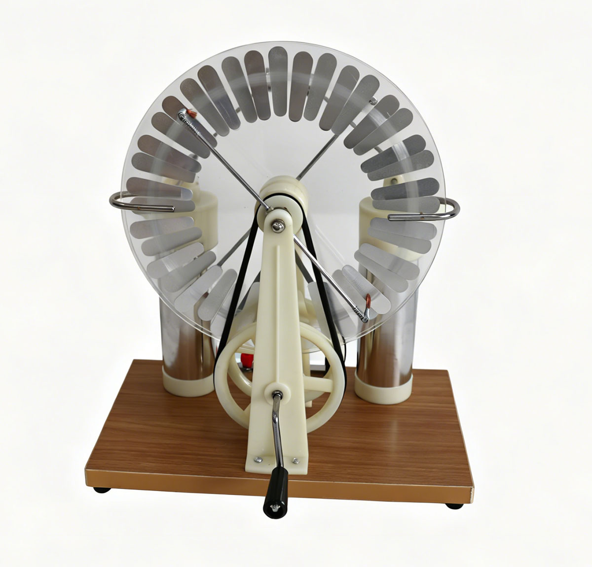 感应起电机是依托静电感应与尖端放电原理研发的常规理科教学仪器,设备无需外接供电,通过手动摇柄操控双绝缘圆盘反向旋转,稳定完成正负电荷分离与储存,可形成高压微电流,使用安全、演示效果稳定。菏泽铭基科技有限公司专注中小学标准化教学仪器供应,所售感应起电机采用高绝缘有机玻璃盘面、优质铜质导电配件与加固底座,搭配莱顿瓶储能结构与可调放电球,结构耐用、绝缘性达标,满足日常课堂演示与实验室分组教学使用。